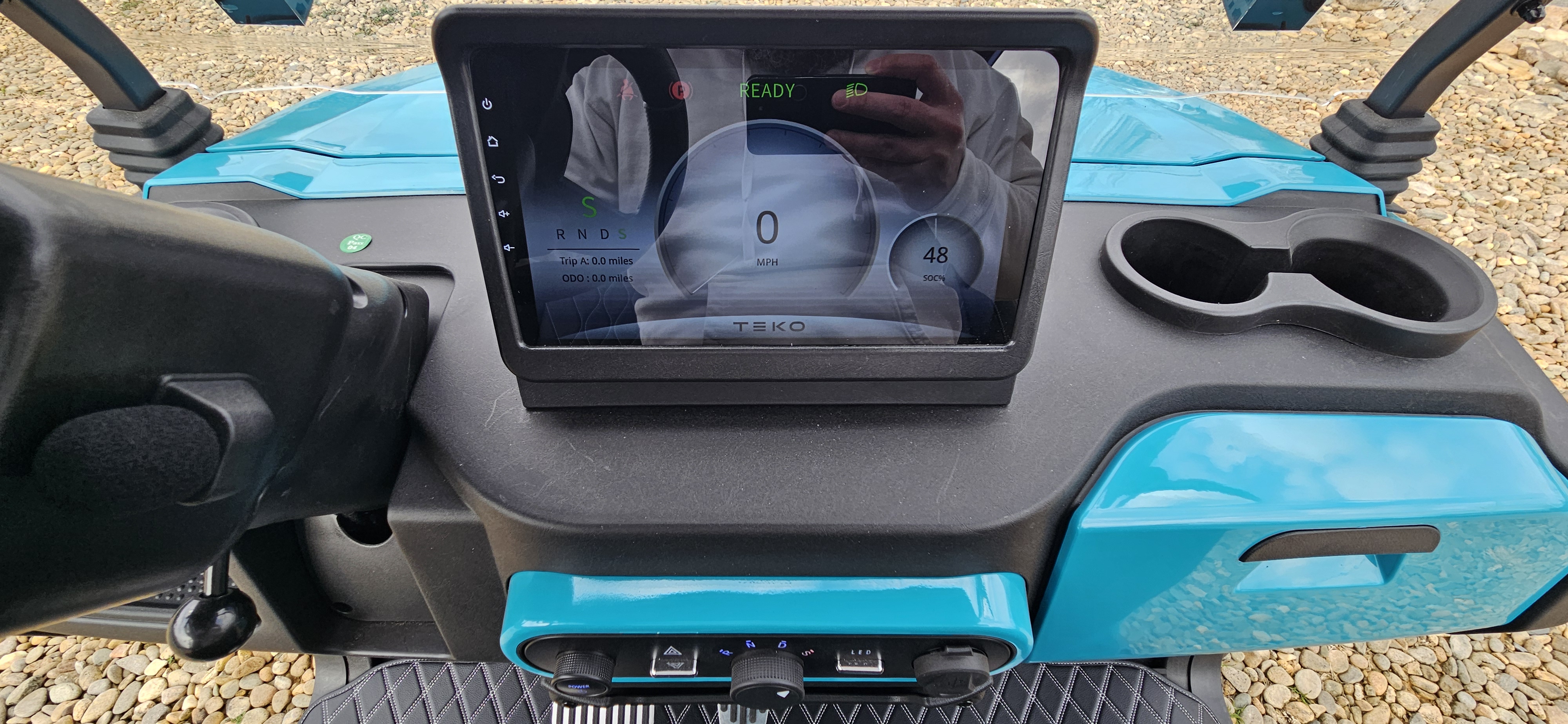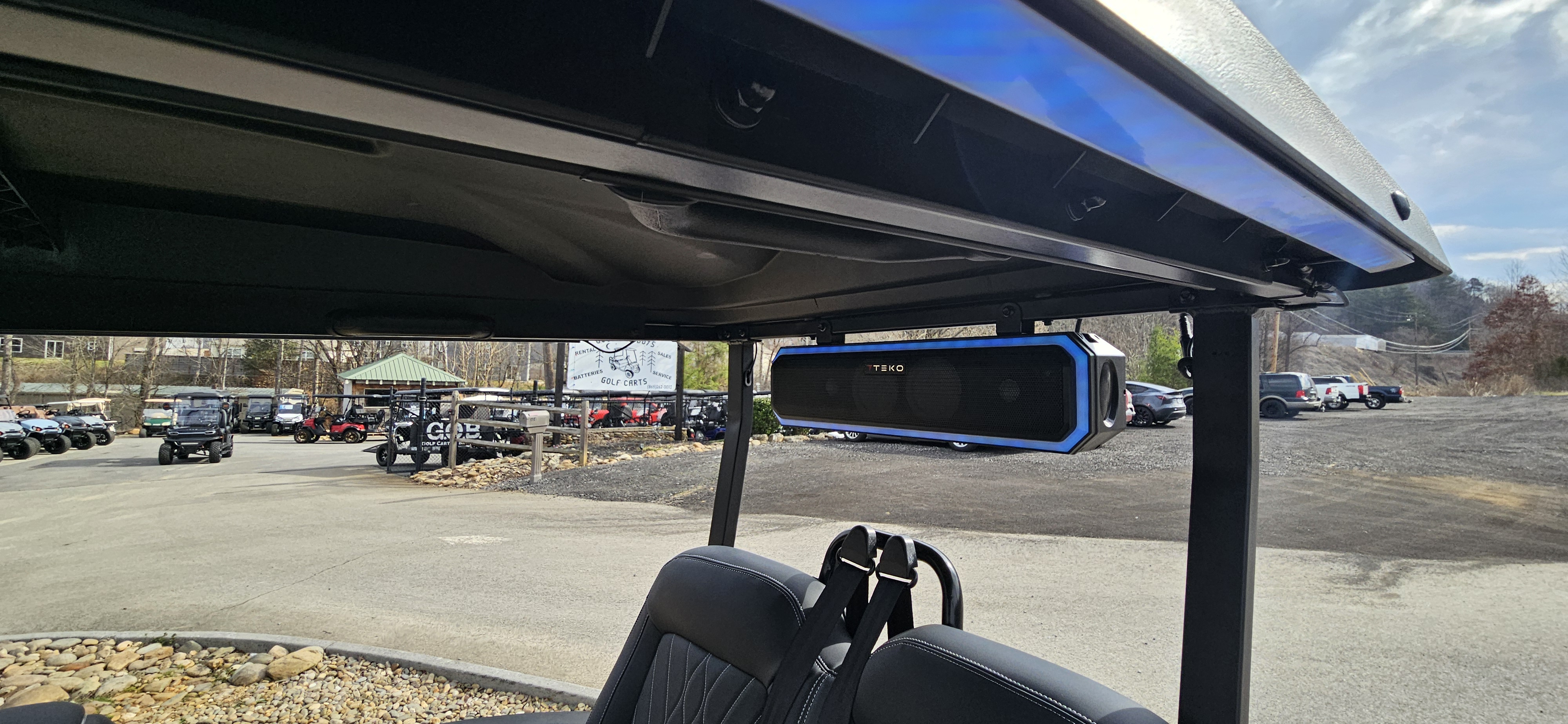 LEDs underneath the cart, in the roof and the seat backs.