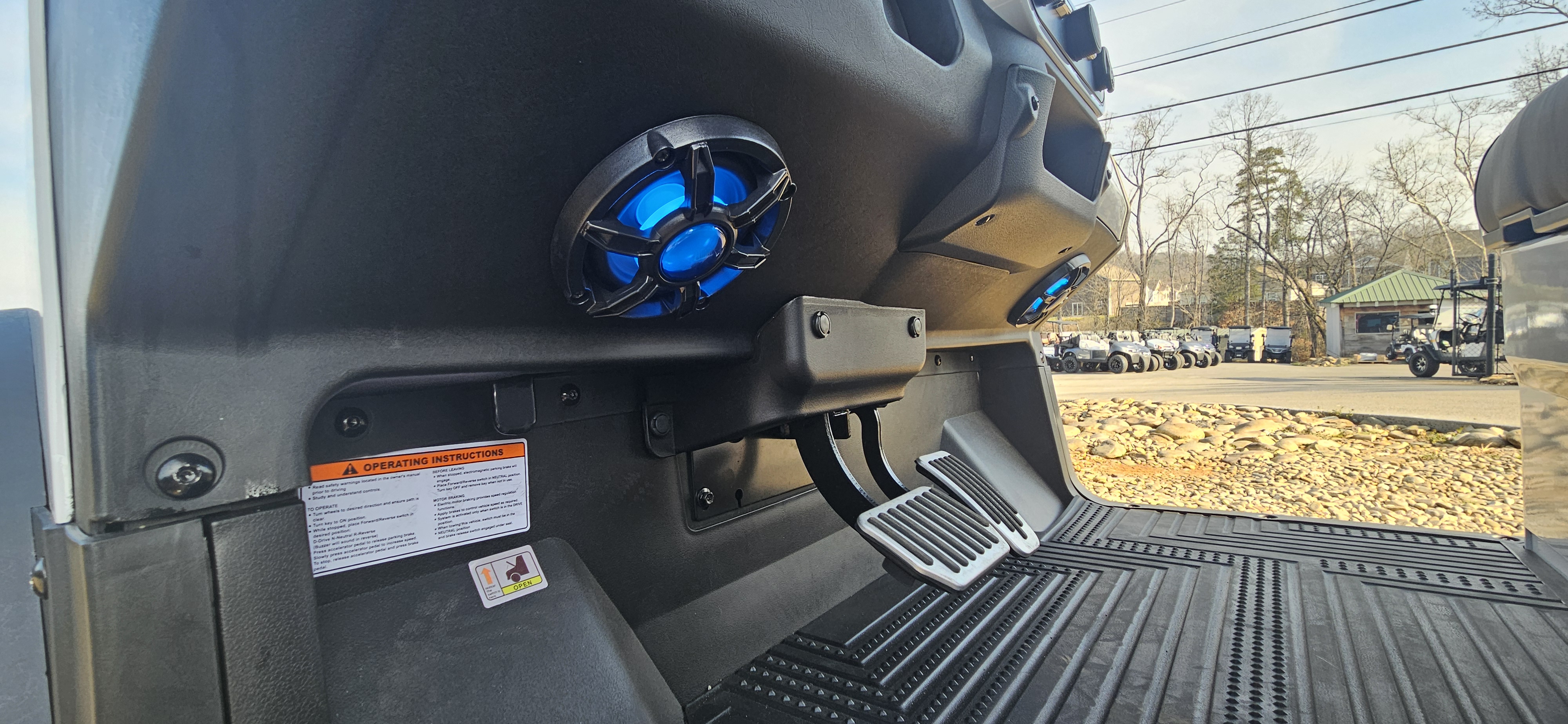 Rear soundbar with LEDs and led speakers in dash.